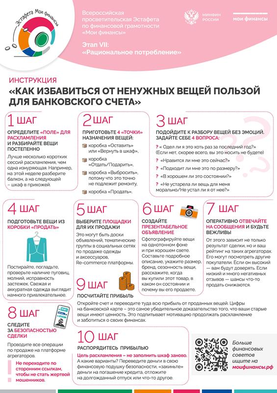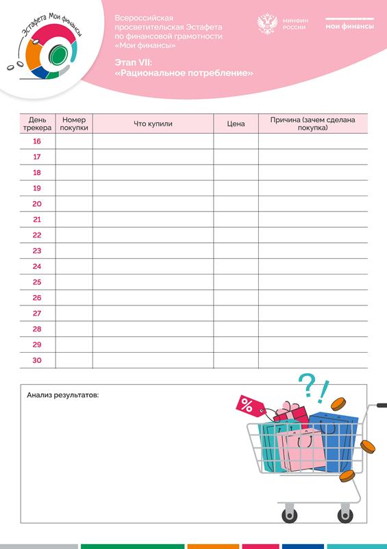 В рамках реализации Стратегии повышения финансовой грамотности и формирования финансовой культуры в Российской Федерации до 2030 года до 10 февраля 2026 года проходит седьмой этап Всероссийской просветительской эстафеты "Мои финансы" по теме «Рациональное потребление».
