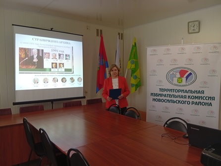 Председатель территориальной комиссии Холодова Е. А. рассказала будущим избирателям о процедуре выборов, кто наделен избирательным правом в России, о процедуре голосования. По окончании была проведена викторина по рассказанному материалу.