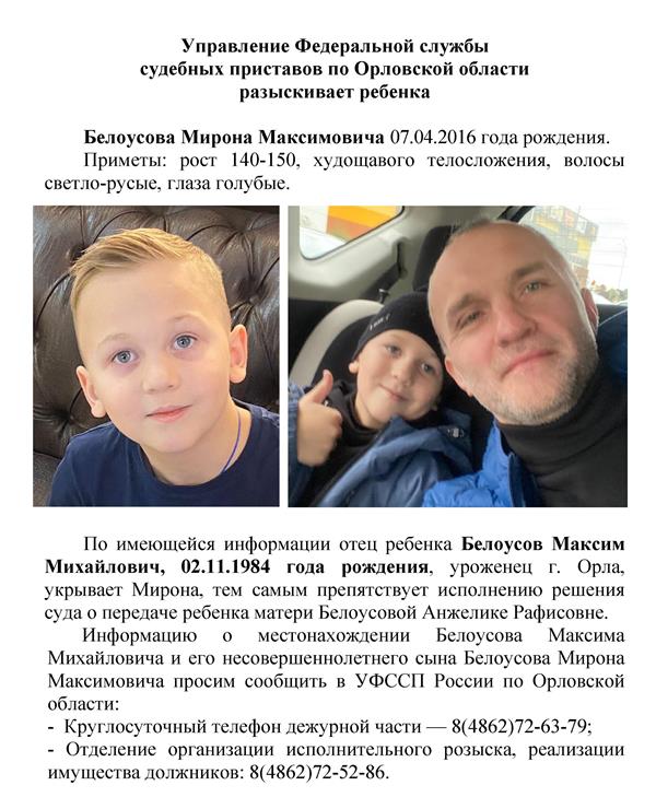 Управление Федеральной службы судебных приставов по Орловской области разыскивает ребенка