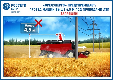 «Орелэнерго» призывает всех участников сельскохозяйственных работ не забывать о правилах электробезопасности. Их несоблюдение может привести к несчастным случаям, включая смертельные исходы. Нарушители привлекаются к ответственности в соответствии с действующим законодательством Российской Федерации.