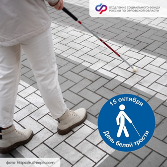 15 октября отмечается Международный день белой трости. Белая трость символизирует людей, которые лишены радости видеть. Отделение Социального фонда России по Орловской области напоминает о мерах поддержки инвалидов по зрению и о том, как их жизнь может стать комфортнее.