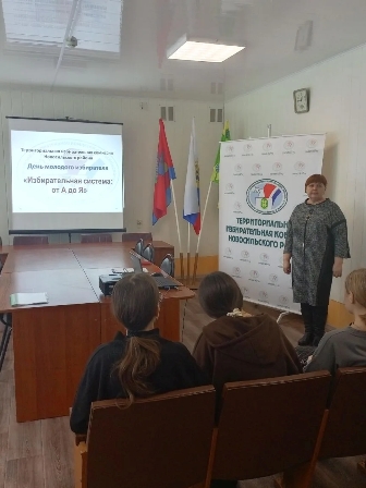 Председатель территориальной комиссии Холодова Е. А. рассказала будущим избирателям о процедуре выборов, кто наделен избирательным правом в России, о процедуре голосования. По окончании была проведена викторина по рассказанному материалу.